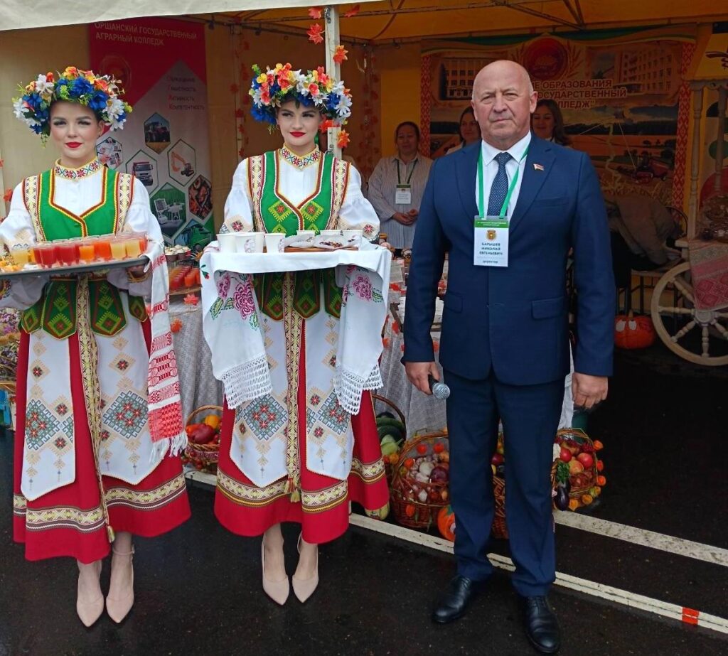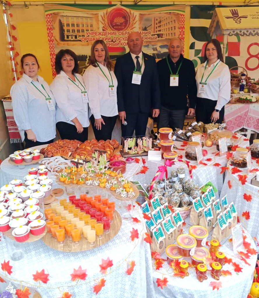 Гостей встречали тематические подворья, представляющие разнообразие сельскохозяйственной продукции и ремесел региона. Яркой и самобытной стала локация УО «Оршанский государственный аграрный колледж», представленная дружной командой во главе с директором колледжа Николаем Евгеньевичем Барышевым.