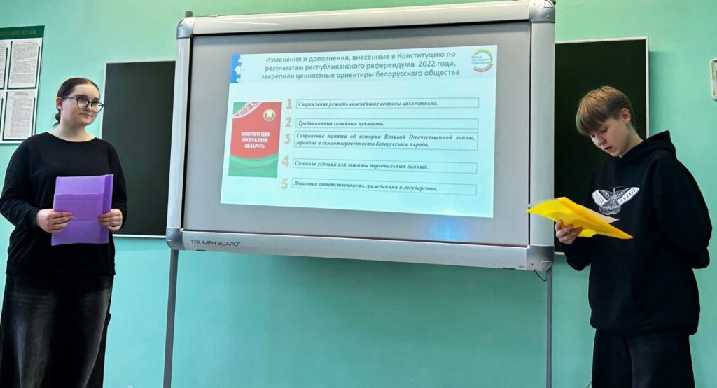 Особый интерес учащихся вызвало приглашение на мероприятие Натальи Александровны Заботкиной, с которой ранее обучающиеся контактировали как с педагогом социальным, а теперь узнали как делегата Всебелорусского народного собрания. Учащиеся забросали ее вопросами, и на все Наталья Александровна с удовольствием ответила.