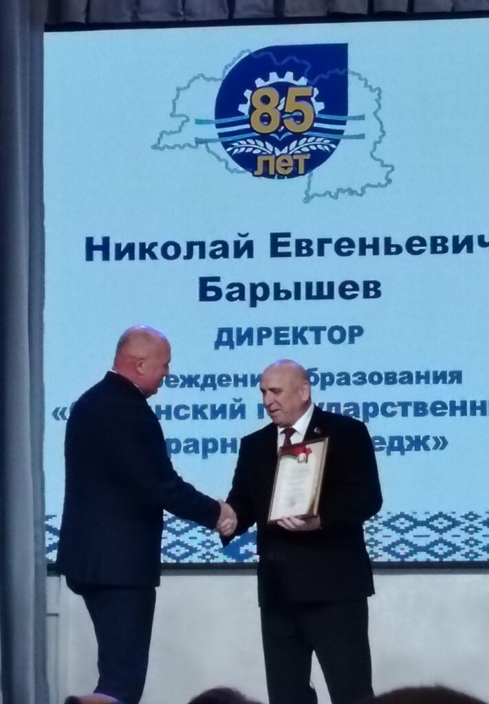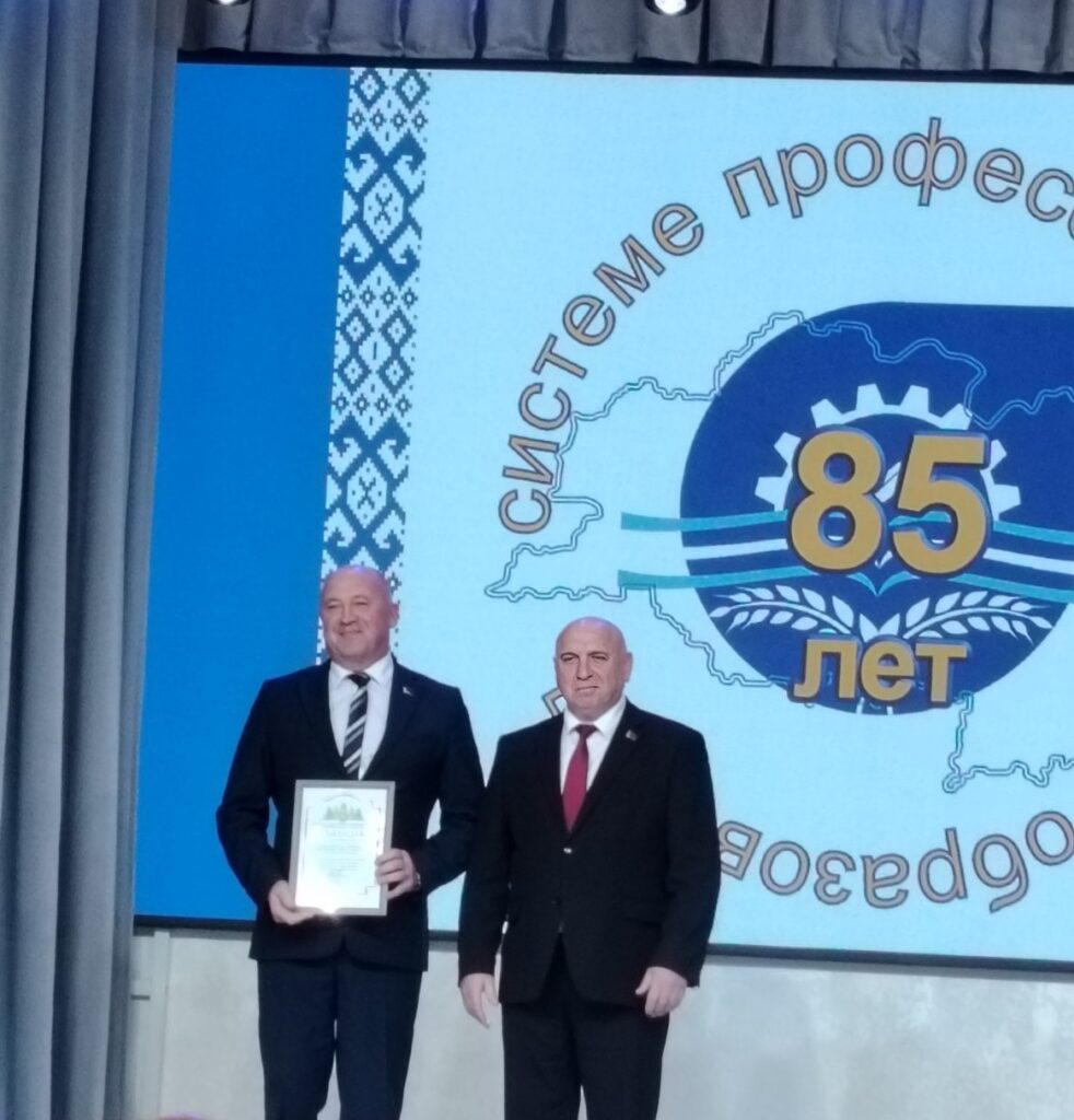 На торжественном собрании были вручены грамоты и благодарности Министерства образования Республики Беларусь, Витебского горисполкома, управлений и комитетов облисполкома, отраслевых профсоюзных организаций педагогическим работникам области. Среди награжденных были директор колледжа Барышев Н.Е., заместитель директора по учебно-производственной работе Дамарад Т.А., преподаватель Буланок Р.С. На празднование 85-летия системы профессионально образования были приглашены ветераны труда Шуминский М.З. и Радкевич С.Ф.
